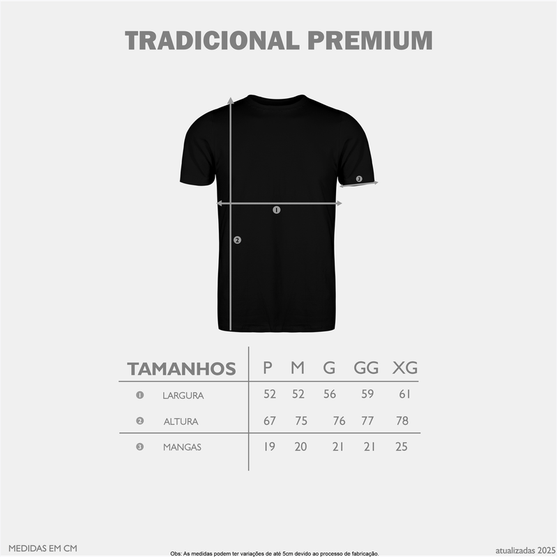 Camiseta fabricada com cortes retos e tecido de meia malha, fio 30.1, penteado, com 100% algodĂ£o e gramatura 165 gramas. Essa malha premium unissex, se encaixa perfeitamente em qualquer biotipo, possui gola com reforço, mangas curtas e gola rebatida. Ideal para pessoas que se preocupam com os mĂnimos detalhes.